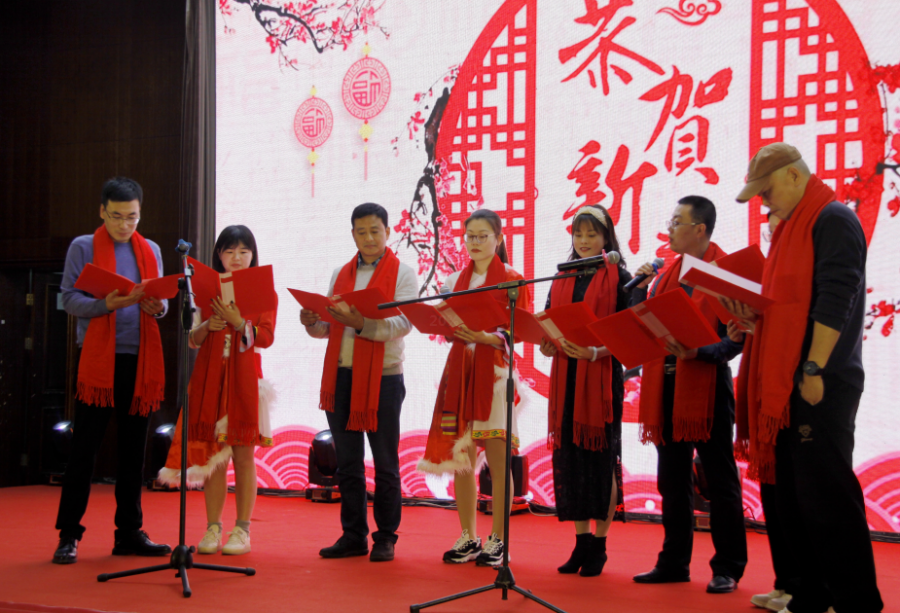 会后,,,,新春团拜会在一片欢歌笑语中举行,,,,公司各部分自主编排舞蹈、小品、朗诵等特色节目,,,,这些个性鲜明,,,,看点十足的节目,,,,点燃了现场激情,,,,游戏环节和抽奖环节更是热闹特殊,,,,将晚会推向热潮 。。整场晚会节目紧凑、精彩纷呈、气氛热烈,,,,充分展示了公司员工高昂高昂的精神风貌 。。